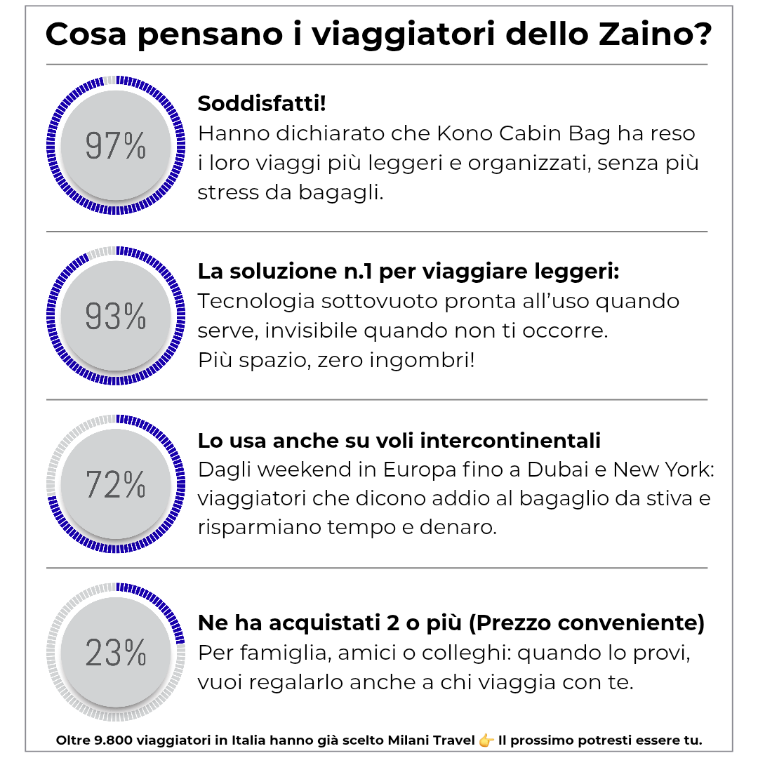Viaggia con il 50% in più dei tuoi oggetti personali eliminando lo scomodo bagaglio da stiva!